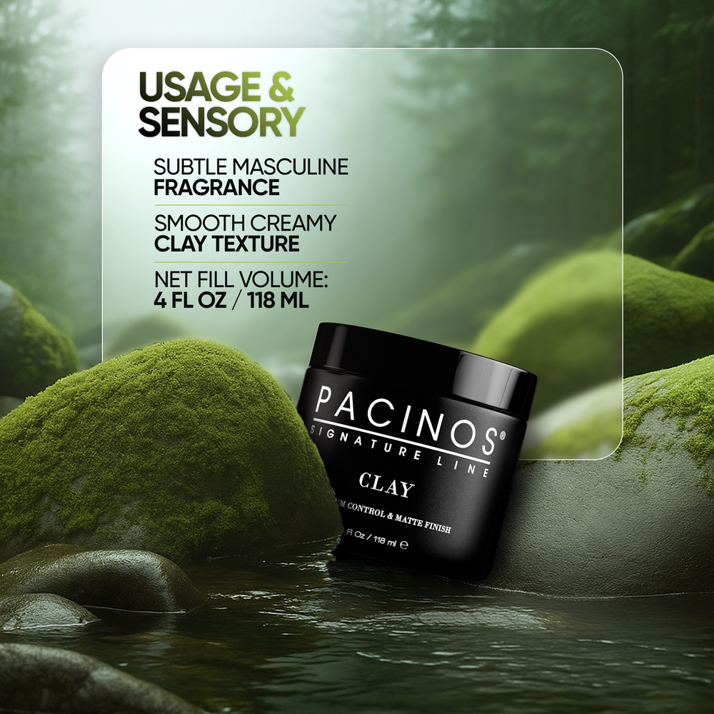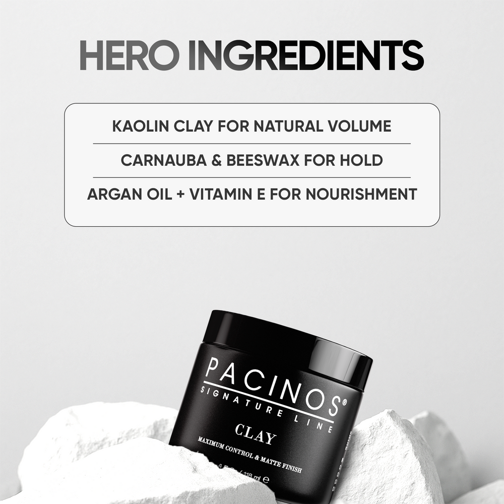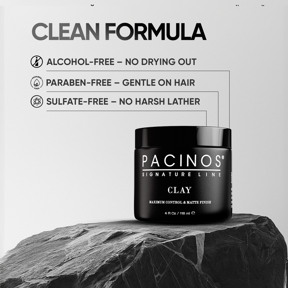 Pacinos Clay delivers maximum control with a natural, low-shine matte look designed to shape and sculpt your hair with confidence. This high-performance styling clay provides firm hold while maintaining softness and flexibility, allowing your hair to look healthy and refined throughout the day.